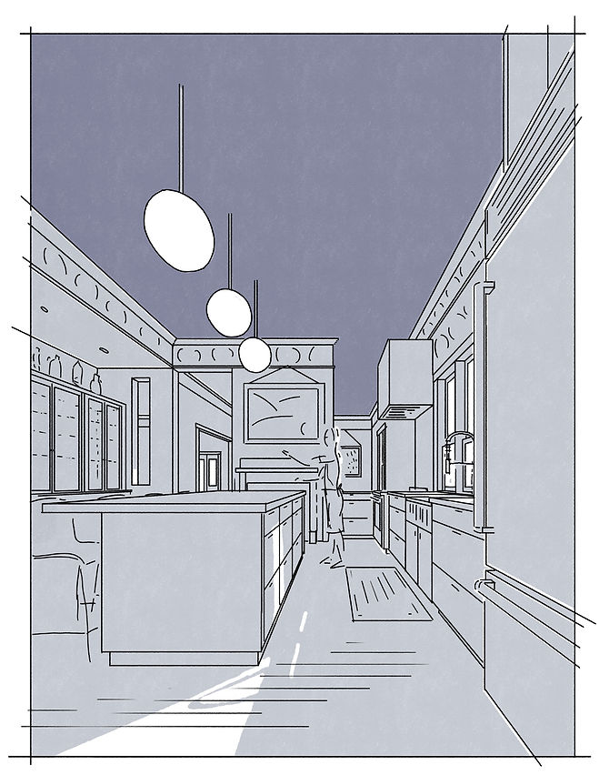 This renovation thoughtfully adapts a turn-of-the-century farmhouse with soaring ceilings and expansive windows to support modern living while preserving its historic character. The design reorganizes the interior around the home’s existing fireplaces, allowing new and old spaces to remain visually and spatially connected. Arrival is reimagined through a new entry that also serves as a music room, reinforcing the house as a place for gathering and creative life. An existing bedroom is converted into a flexible home office and guest room, while a revised primary suite introduces a walk-in closet and updated bathroom without disrupting the original proportions of the house. New service spaces—including a mudroom and laundry room—provide essential, out-of-sight work areas that support everyday routines. A screened porch, accessed through the scullery off the kitchen, extends the house into the landscape. The screened porch provides a place for processing vegetables from the garden. Throughout the renovation, new cased openings are carefully introduced into existing walls, allowing spaces to flow together without fully removing partitions. This approach preserves the character, scale, and integrity of the original house while making it feel renewed and inhabitable for contemporary life.